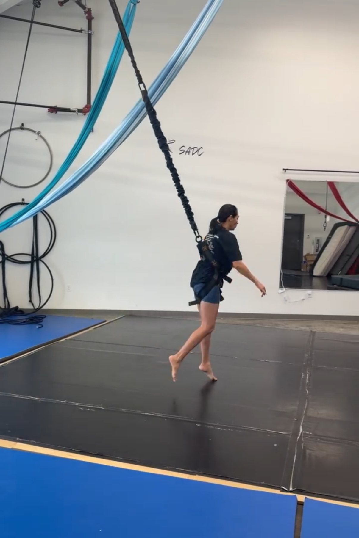 Our adult bungee fitness classes let you strap in, defy gravity, and bounce through a high-energy, low-impact workout. Harnessed to ceiling-mounted bungee cords, you'll soar through cardio blasts, strength moves, and fun aerial flows that tone your core, glutes, arms, and legs—all while being gentle on your joints. Perfect for adults seeking a playful yet powerful way to build strength, boost endurance, and burn calories. No experience needed—just bring your energy and get ready to feel like a superhero!